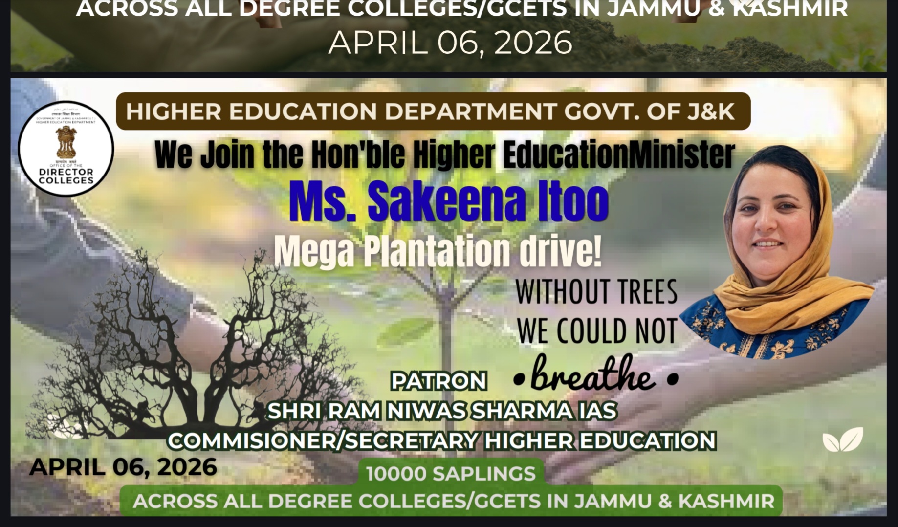 To join the Honorable Higher Education Minister, Ms Sakeena Itoo, Govt. Degree College Women Kupwara organised a mega plantation drive in the Campus on 6th April 2026.